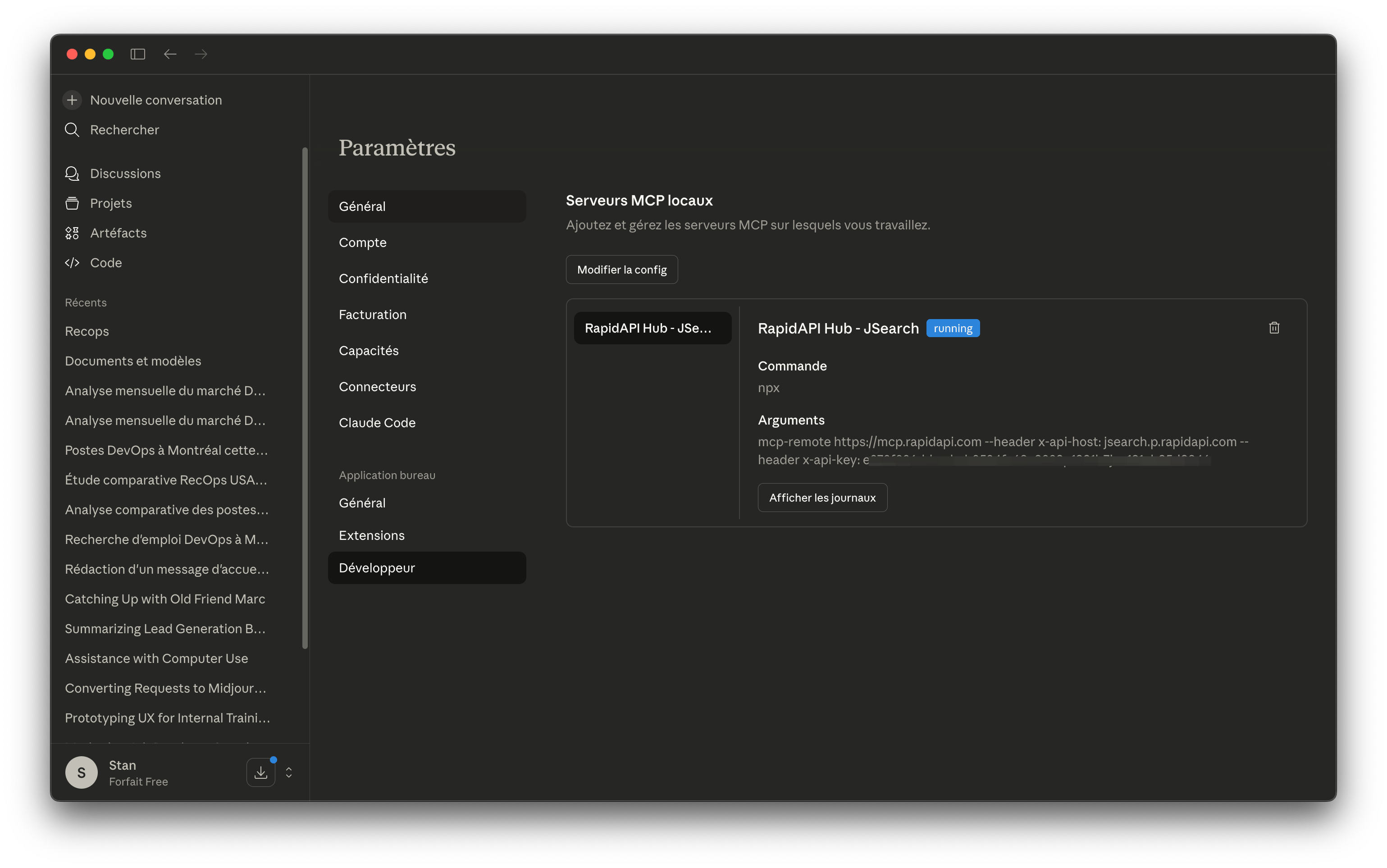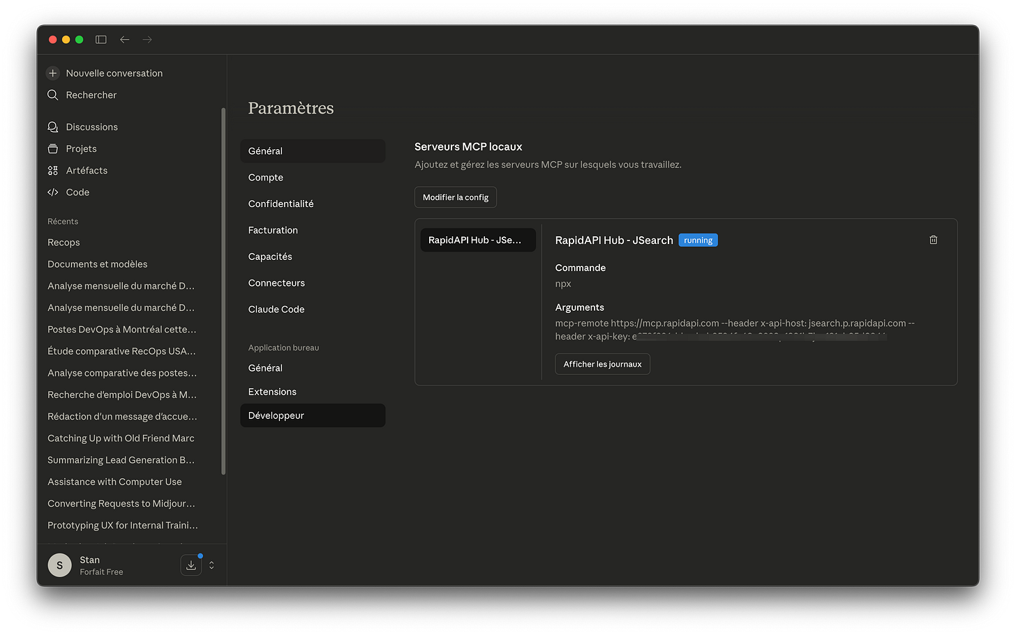 Étape 4 — Intégrer JSearch dans Claude Desktop