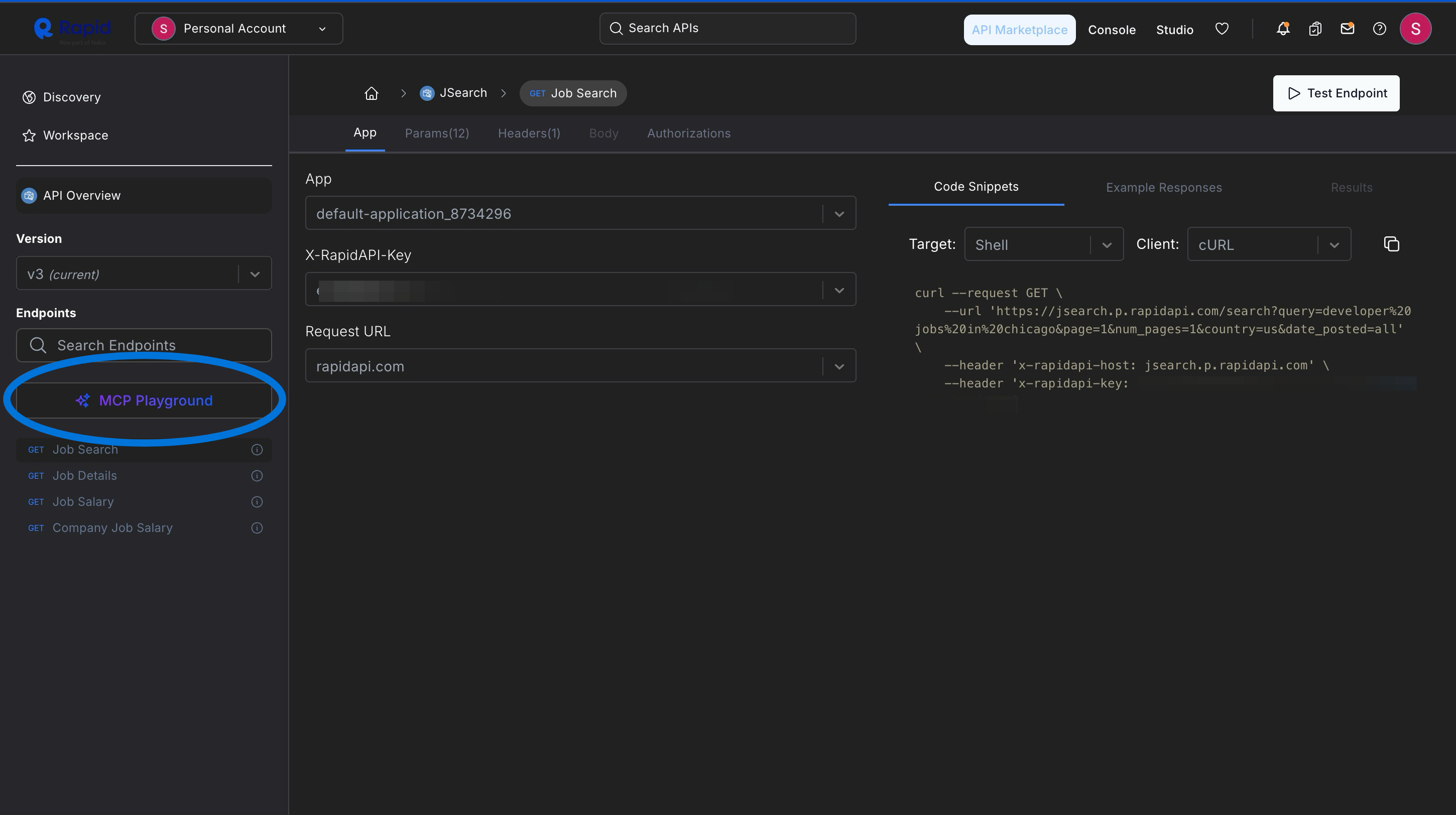 À gauche, tu verras une case MCP Playground. Clique dessus.